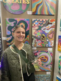 Hi! I'm Cat, a self-taught artist now located in Dallas, TX after moving from Austin, TX. I specialize in creating vibrant, playful, form based paintings using acrylics. My abstract creations are filled with colors and shapes that bring joy and spark curiosity. Trying to make reality less boring. Let's explore my colorful world together!
